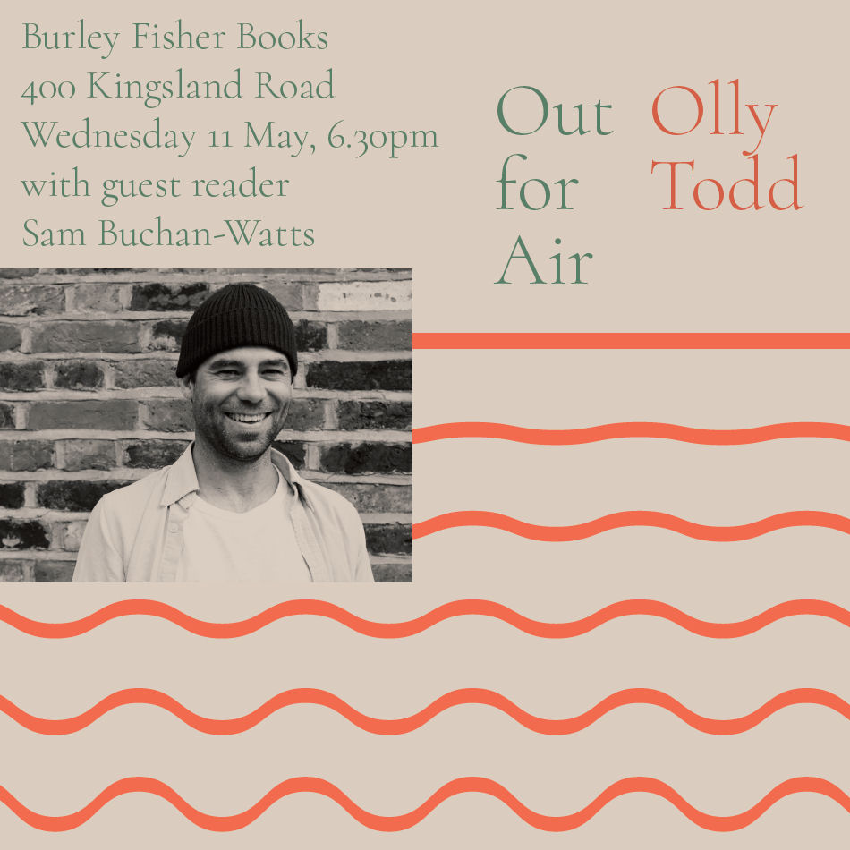 Join Olly Todd and special guest Sam Buchan-Watts to celebrate the launch of Olly’s debut collection, Out for Air.